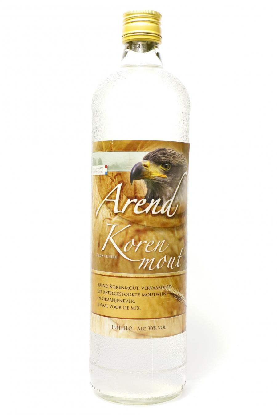Arend Korenmout 30% is een lichtere borrel van ons huismerk: Arend. De korenmout bestaat uit ketel gestookte moutwijn en graanjenever. Je proeft jeneverbes, laurier en wat smaak van sinaasappel.