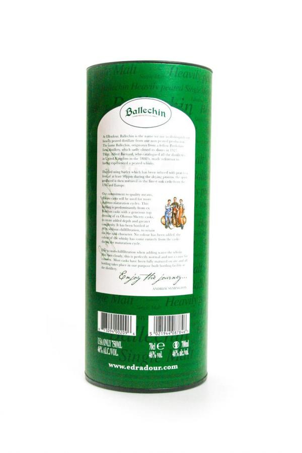 Ballechin is een merk van Edradour die ze gebruiken voor hun heavily peated scotch. De gerst is zodanig doordrenkt met turf rook dat de ppm 50 telt (deeltjes per milliliter). Dat is behoorlijk gerookt! Echt een whisky voor de liefhebber.