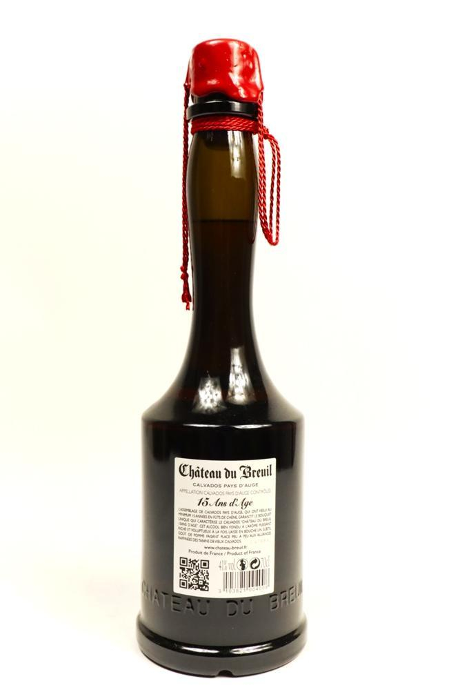 Chateau du Breuil 15 Ans d'Age is een blend van verschillende calvados die een rijping hebben gehad van 15 jaar of langer. Hij heeft hele mooie sterke aroma's met smaken van appel.