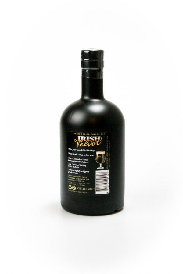 Koffielikeur om zelf irish coffee mee te maken. Voeg 3 delen kokend water toe aan 1 deel Irish Velvet en top het af met een toefje slagroom.