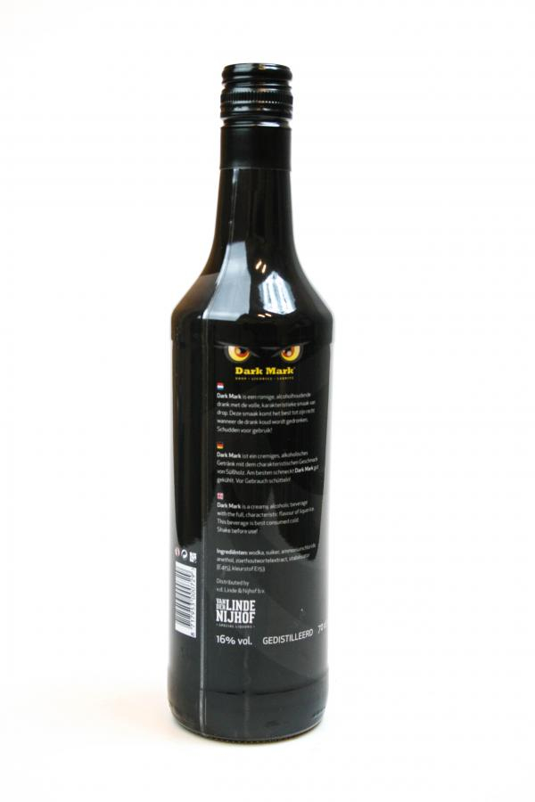 Dark Mark is een romige, alcohholhoudende drank met de volle, karakteristieke smaak van zoutedrop. Deze smaak komt het best tot zijn recht wanneer de drank koud wordt gedronken en natuurlijk schudden voor gebruik.