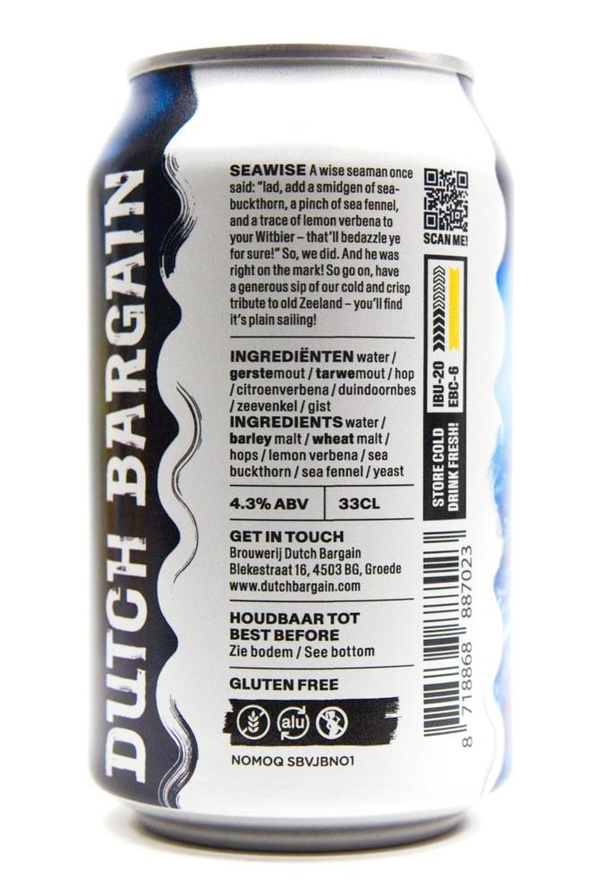 Seawise van Dutch Bargain is een Zeeuws wit bier met Duits Weihenstephan gist. Dit bier is perfect om te drinken aan de Zeeuwse zee. Door de zeevenkel en duindoornbes proef je de Zeeuwse duinwind!