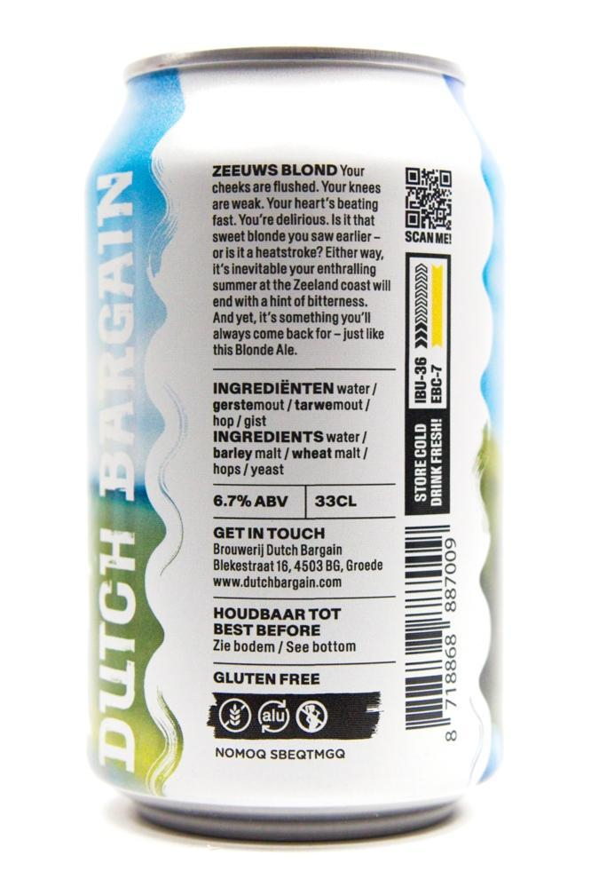 Zeeuws Blond van Dutch Bargain is een blond bier met karakter. Een ode aan de Zeeuwse blonde waar je tijdens je vakantie spontaan verliefd op bent geworden. En dat zul je ook snel met dit bier. Het bier heeft een stevige, romige smaak, veel fruitige tonen en een subtiele zoetheid.