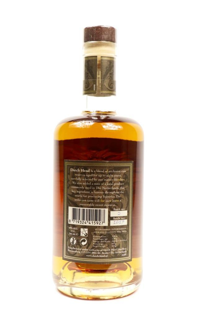 DUTCH HEAD is een geblende rum die tot 8 jaar heeft gerijpt op eiken vaten en een klein beetje basterdsuiker heeft gekregen om een wat zoetere en soepelere karakter te krijgen. Heerlijke toegankelijke rum van Nederlandse bodem. 'De perfecte rum blend met een exliciete zoete geur, unieke smaak en een heerlijk lange afdronk, vergelijkbaar met dat van een verfijnde whisky… lees meer