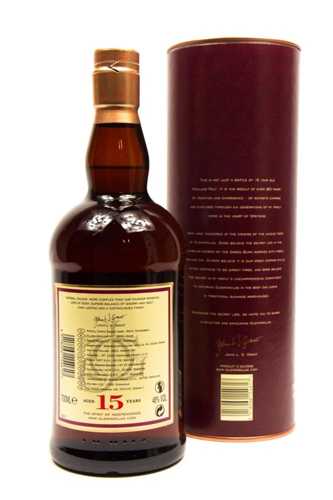 GLENFARCLAS 15-YEARS-OLD is een Single Malt Whisky uit de Speyside. Glenfarclas is een van de weinige distilleerderijen die nog in handen is van een Schotse familie, de familie Grant. Glenfarclas betekent ‘vallei van het groene grasland’ in het Gaelic. De Whisky heeft een mooie donkere kleur en heeft een sterke kruidige geur. De Glenfarclas 15-years-old heeft tonen van zoethout en… lees meer