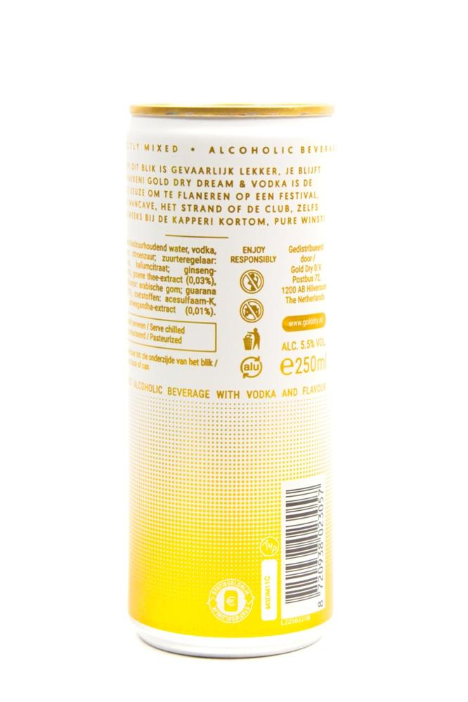 Gold Dry Dream & Vodka is een suikervrij drank op basis van plantenextract. Dream & Vodka is een alcoholische drank.
