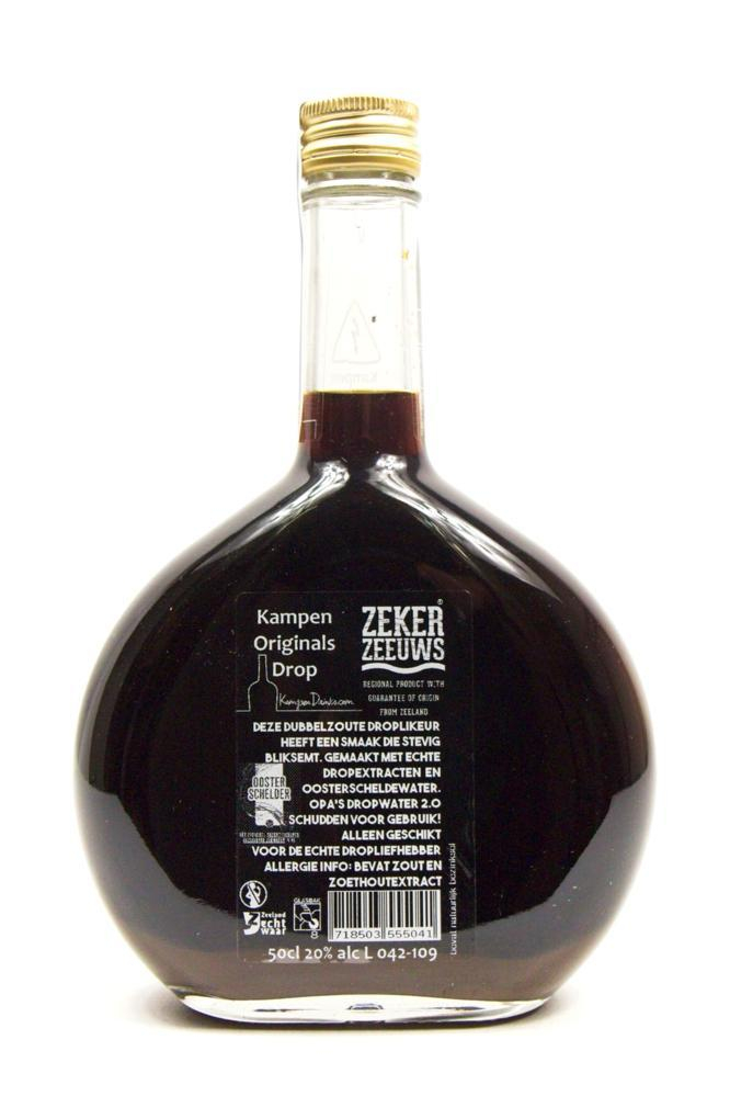 Zeeuwse Bliksemdrop likeur van Kampen Originals is een zoute droplikeur op basis van Oosterscheldewater. Je proeft de ziltigheid en dat gaat fantastisch samen met de dropsmaak.