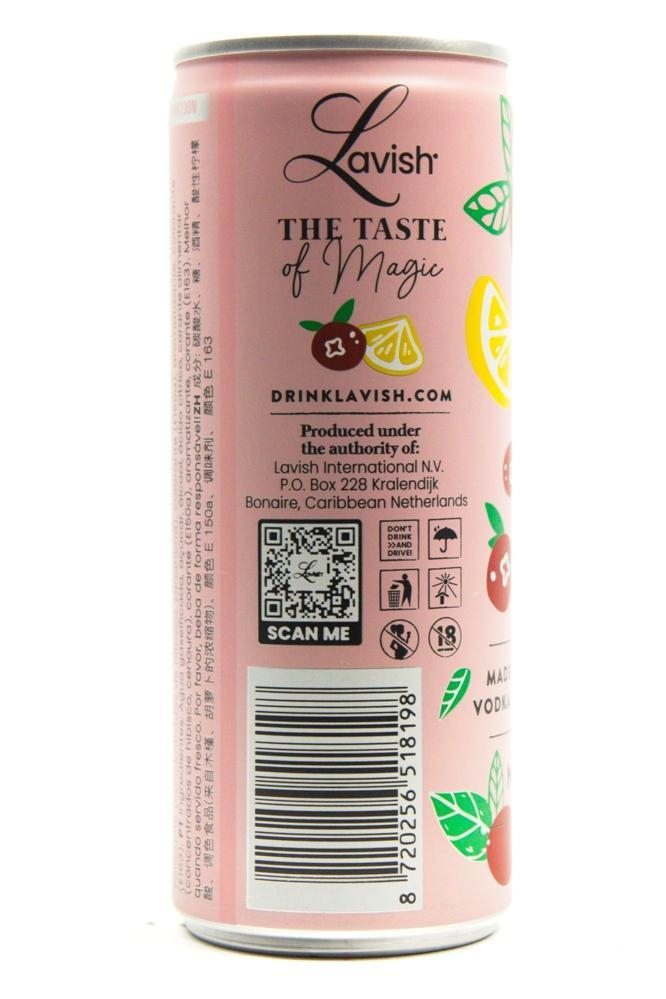 Lavish Cosmopolitan Signature Cocktail is een heerlijke cocktail van Lavish uit de Nederlandse Caribbean. Een heerlijke verfrissende cocktail van vodka, bronwater en cranberry met citroen smaken. Deze ready to drink cocktail heeft 12,5% alcohol, een stevige cocktail dus! Ideaal om mee te nemen naar een festival of het strand/park.