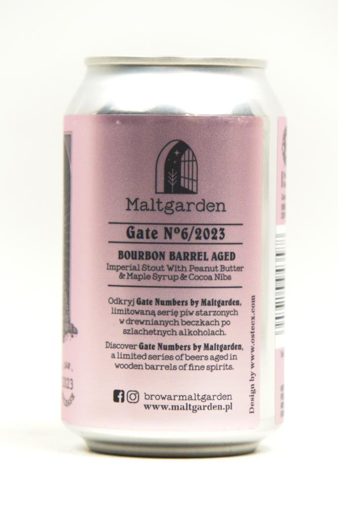 Gate Nº6/2023 van Maltgarden is een Pastry stijl Imperial Stout. Hij heeft gerijpt op Heaven Hill bourbon vaten gevuld met pindakaas, maple syrup en cacao nips.