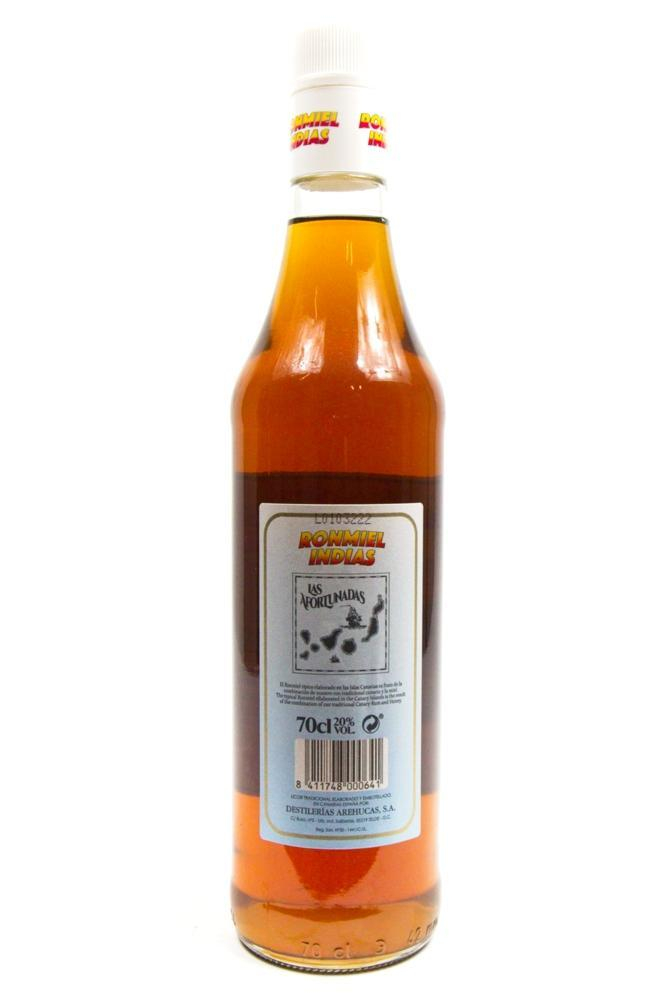 Ron Miel Indias is een heerlijke zoete rum die veelal gedronken wordt op de Canarische eilanden. Voor de Ron Miel Indias mengen ze rum met honing, wat zorgt voor een heerlijke zachte en zoete smaak.