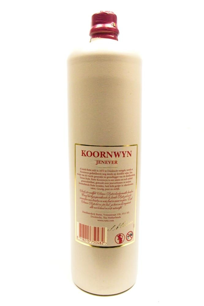 KOORNWYN is een traditioneel granendistillaat, gestookt met jeneverbessen en de kenmerkende Rutte kruiden. Al sinds Rutte zich in 1872 in Dordrecht vestigde, wordt er Koornwyn gedistilleerd; nog steeds op dezelfde wijze. Rutte Koornwyn is een intens en toch subtiel granendistillaat, heel licht gerijpt op eikenhouten vat.