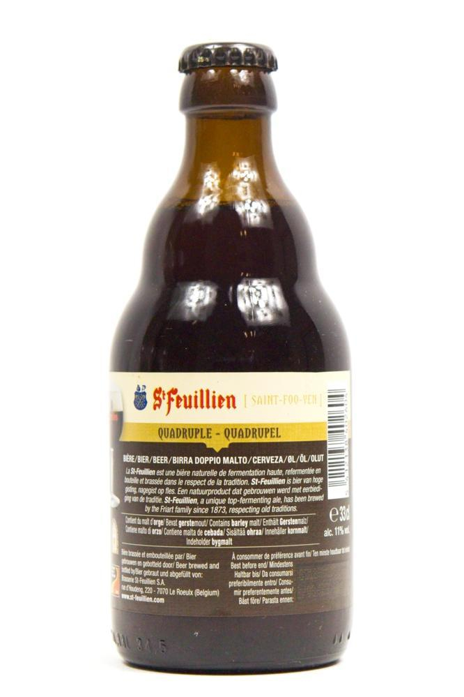 St-Feuillien Quadruple is een zeer donker en compact bier. Ze is merkbaar alcoholisch. Ze onderscheidt zich door een complex en fijn gekaramelliseerd aroma en met tinten van Madeirawijn en gekonfijt fruit en een intense toets van fermentatie-esters (bananentype). Een lichte hopgeur (Engelse stijl) maakt het geheel compleet. De mond is lang met een krachtig lichaam, gebouwd op de dichtheid en… lees meer