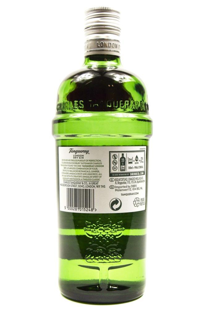 Tanqueray London Dry Gin gebotteld op export strength, met een alcohol percentage van 43,1%. De groene fles is geïnspireerd door een cocktail shaker. Tanqueray is de meest geëxporteerde gin naar Amerika. Daar wordt hij vooral gebruikt in de Dry-Martini.