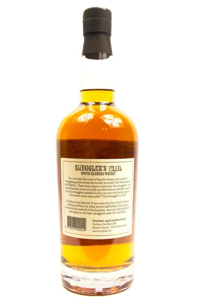 Smuggler's Trail Dutch Single Blended Whisky is een nieuwe blended whisky van Zuidam. Deze is geblend met de single malt whisky van Millstone en een graandestillaat van Zuidam. De whisky is heerlijk zacht en vol met een licht zoete smaak die typisch is voor de Zuidam destillaten.